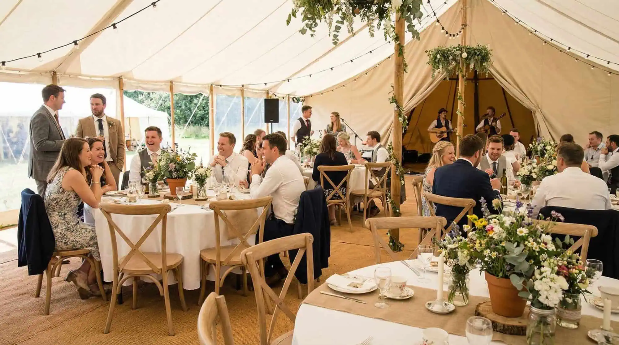 Wooden cross back wedding chairs with a vintage finish and a cross back.